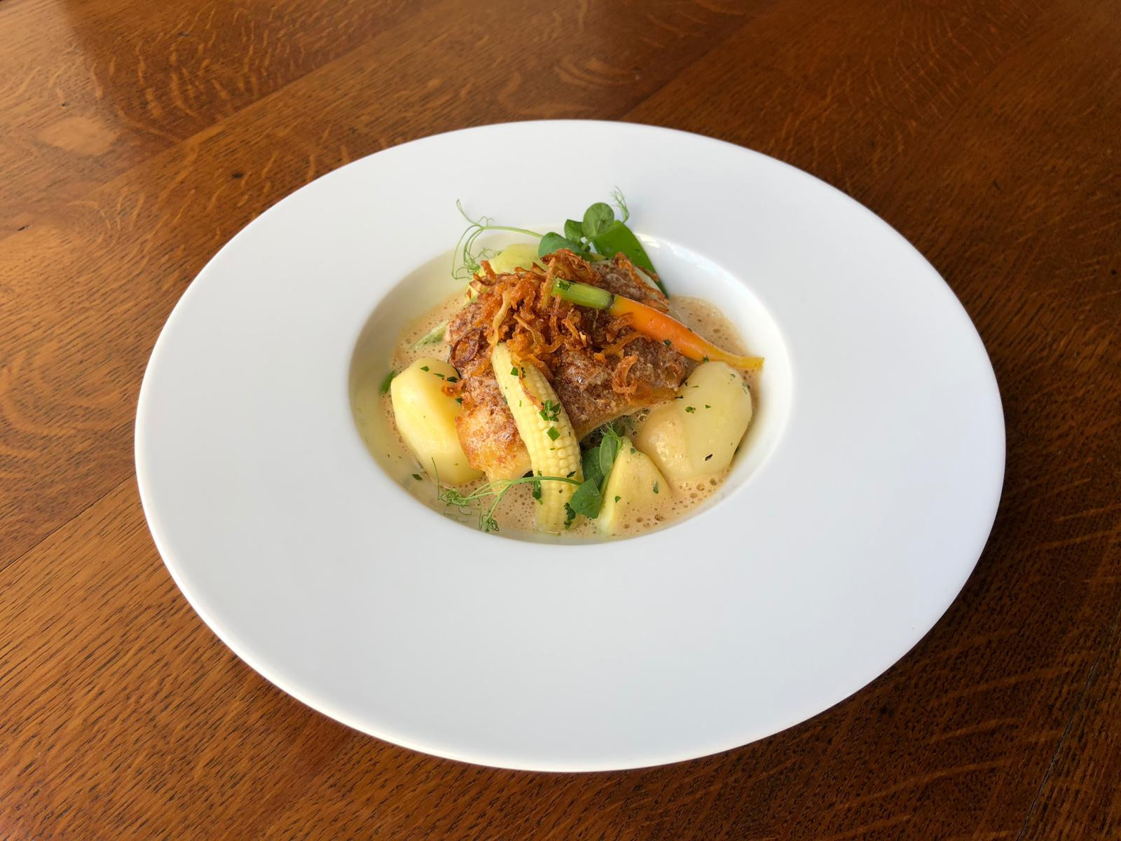 Zanderfilet mit Zwiebelkruste, jungem Spinat und Rieslingsauce: Ein Rezept von 15 Punkte-Chefkoch Thierry Fischer.