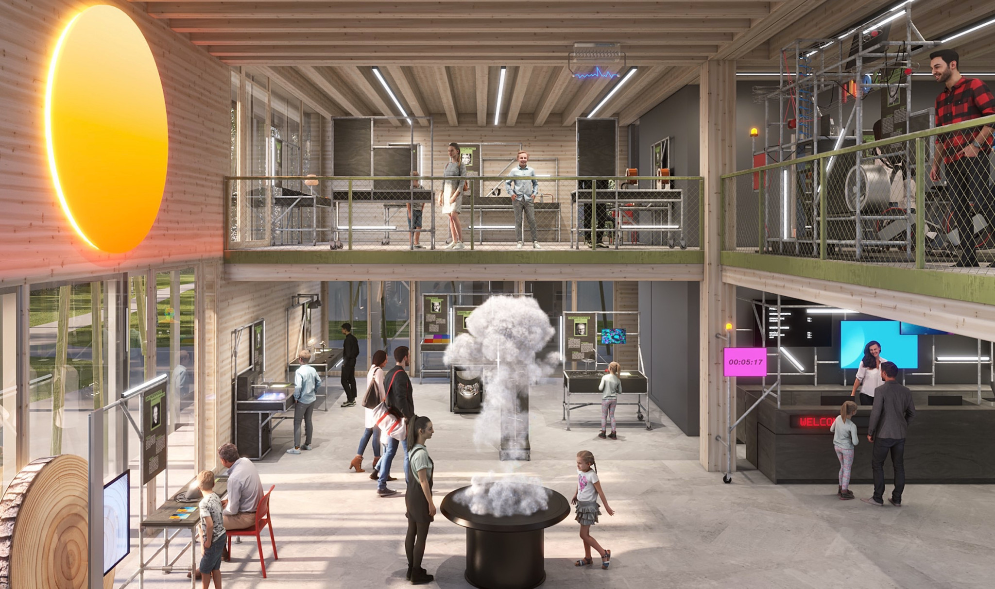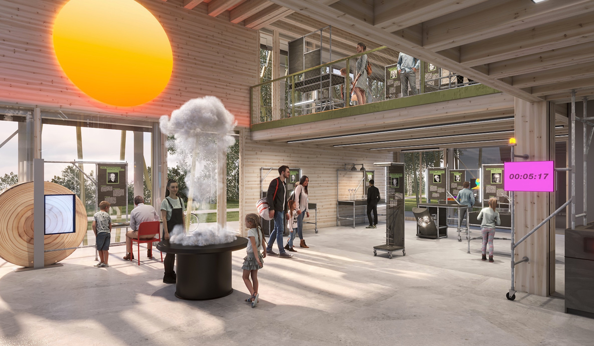 Konkret erstreckt sich das Science- und Erlebniscenter auf zwei Gebäude. Da ist zum einen der Neubau mit Namen «Faraday», welcher derzeit von den Architekten Rapp erstellt wird und unter anderem als Empfangsbereich konzipiert ist. In diesem Gebäude befinden sich zudem Interaktivstationen zu Klimaphänomenen und Energiethemen sowie Workshop- und Eventräume.
