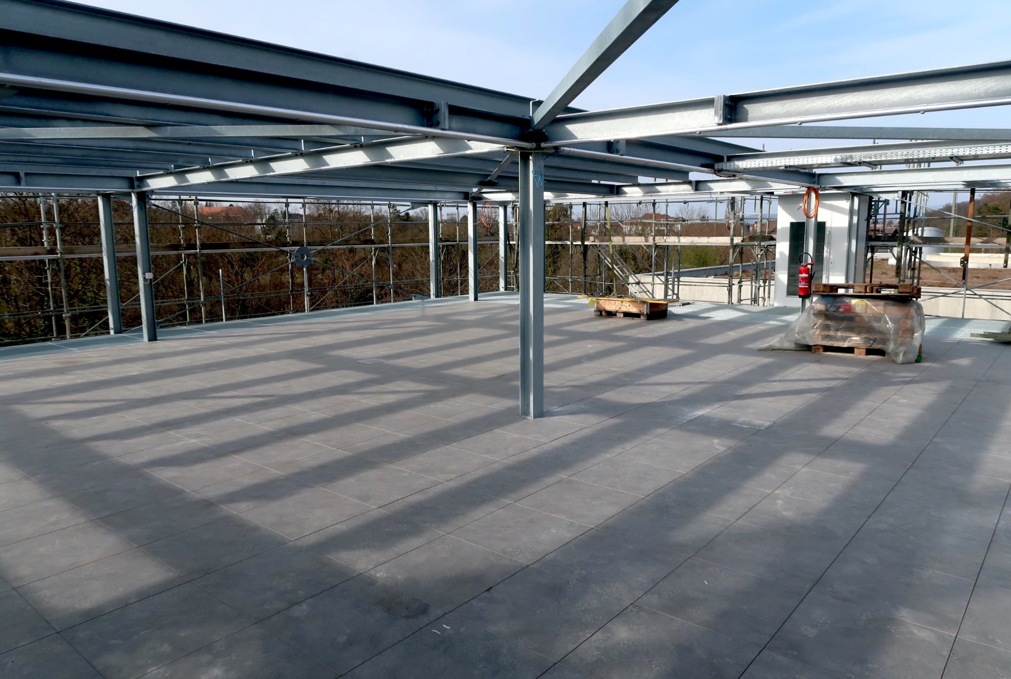 In den Sommermonaten kann auch das mit Solarpanels überdeckte Flachdach genutzt werden – entweder als weiteres Feld für allerlei Versuche oder als mietbare Eventfläche mit Blick auf die Flusslandschaft der Birs.