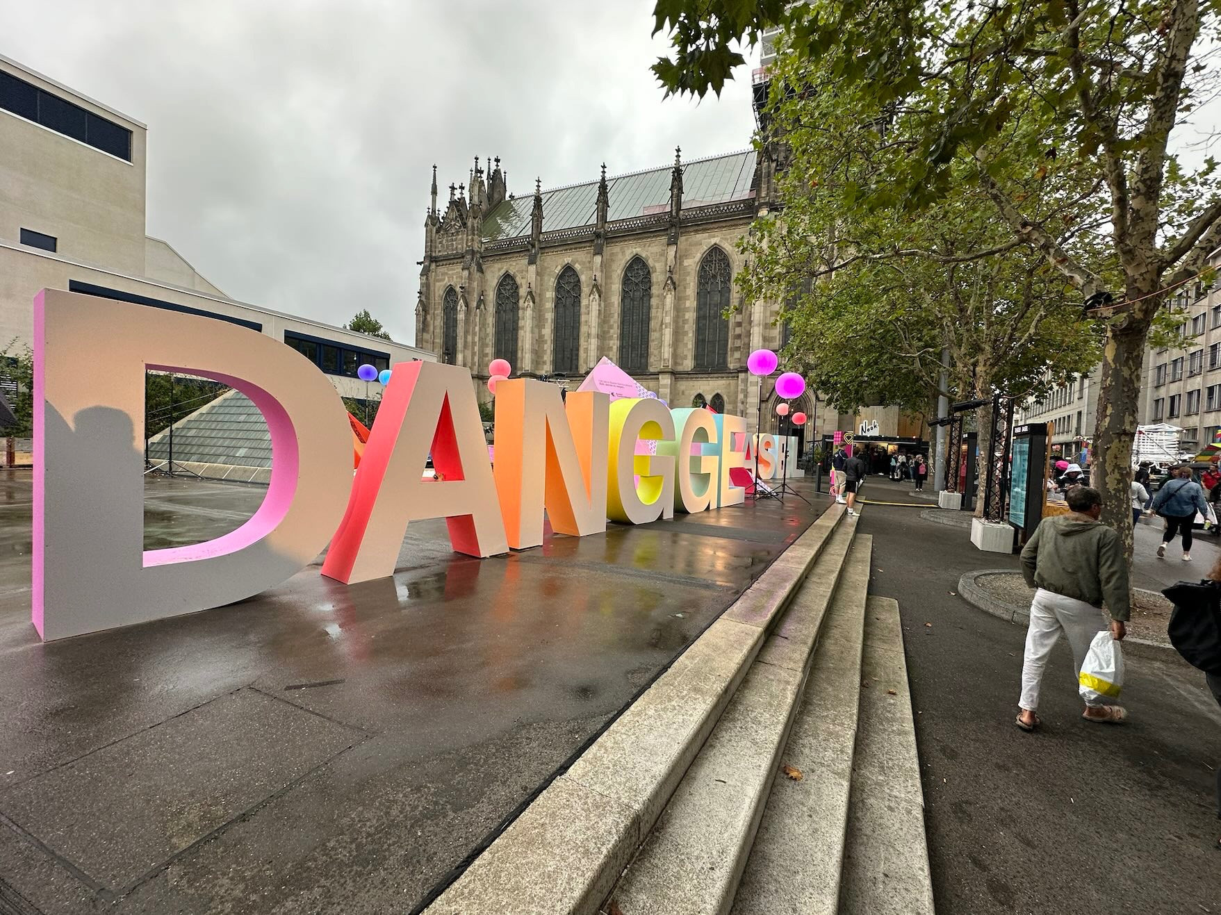 Beliebte Publikumsmagnete sind nebst den vielen Essensständen die Fotostationen: Dazu gehören die aufwändig gestaltete Blumenkulisse des Basler Traditionsgeschäfts Blumen au Bouquet oder der mannshohe Schriftzug «Dangge Basel», den die Basler Kantonalbank aus Anlass ihres 125-jährigen Jubiläums aufgestellt hat.
