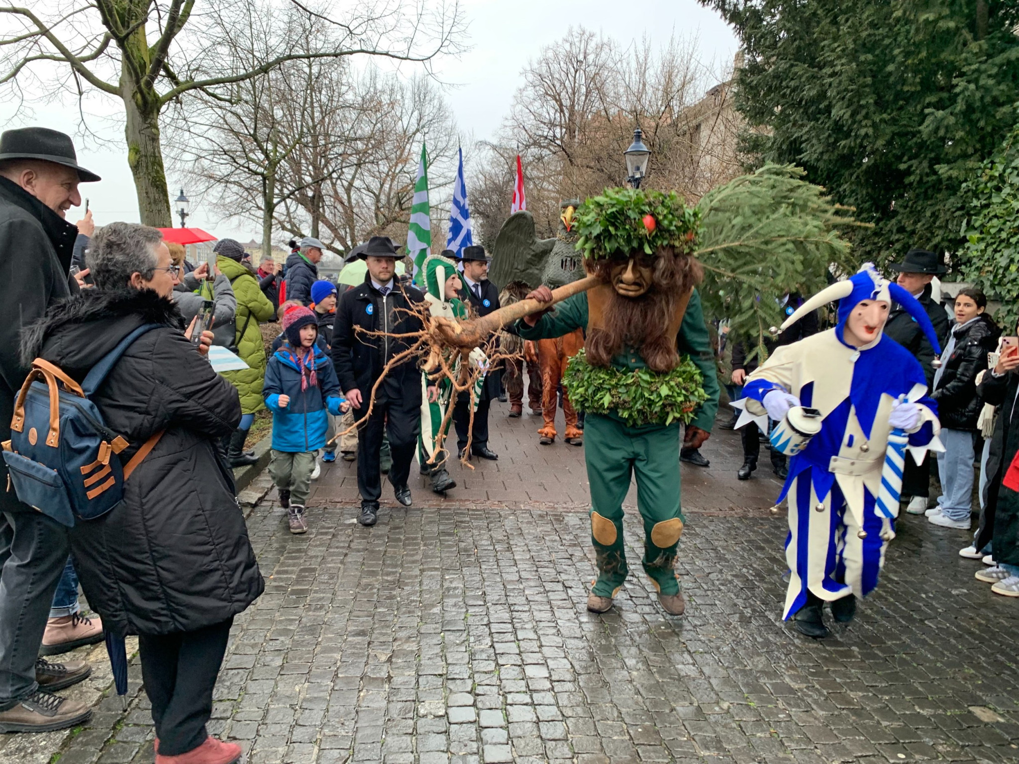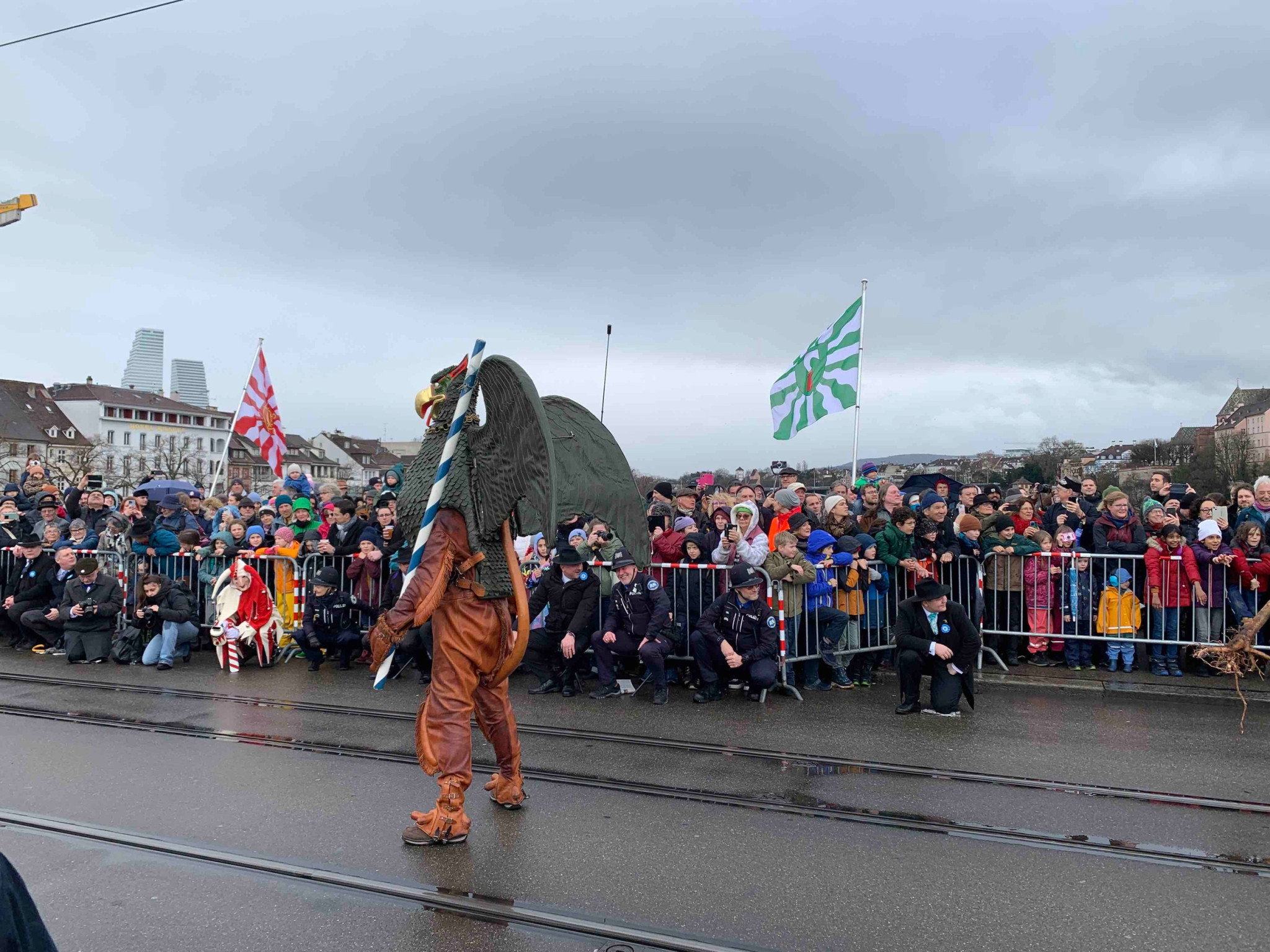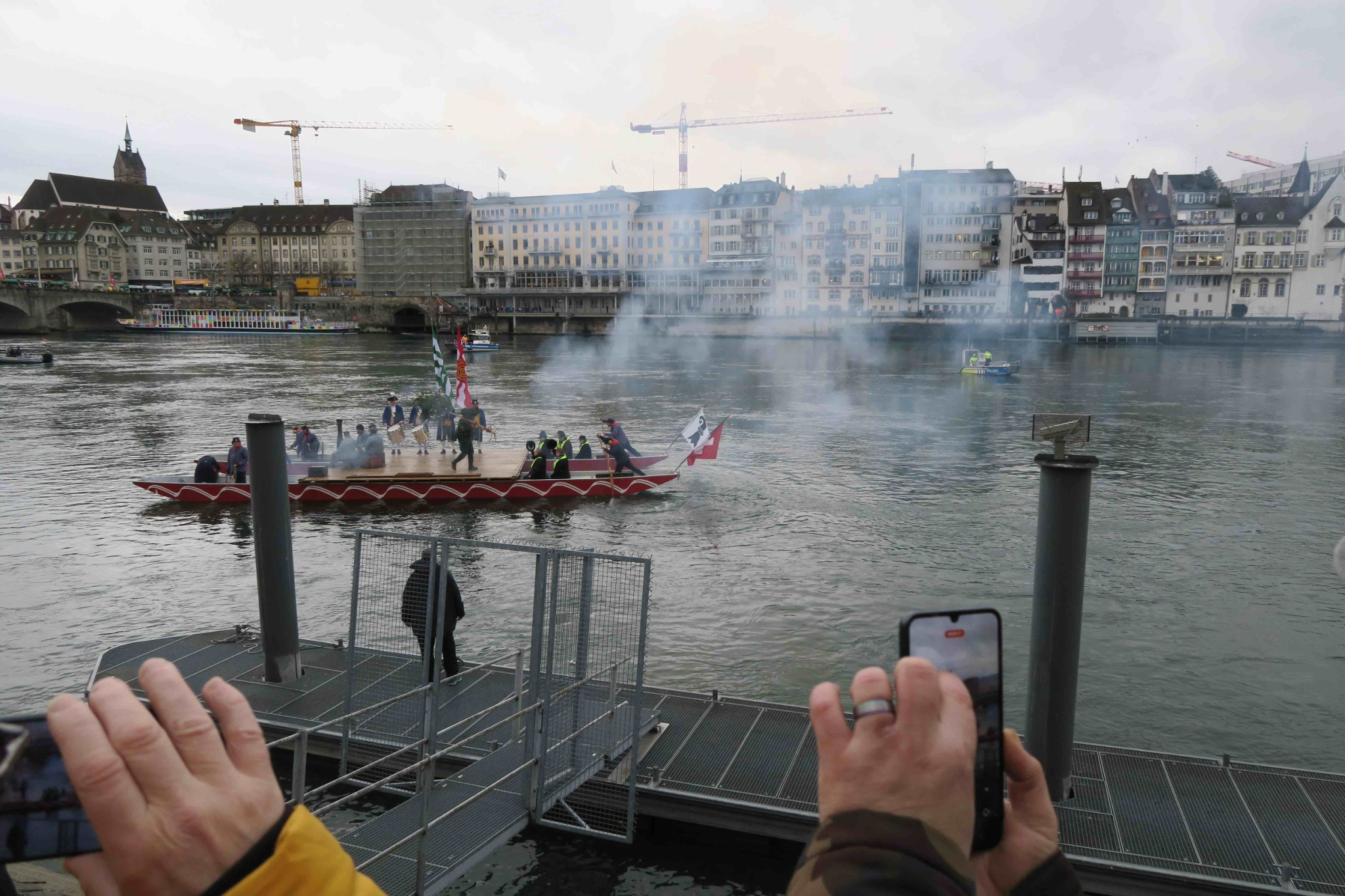 Zwischen dem Wildmaahorst oberhalb der Schwarzwaldbrücke und der Anlegestelle beim Kleinen Klingental säumen hunderte Schaulustige den Weg. Darunter hat es – wie jedes Jahr – viele Schulklassen. Erwachsene wie Kinder erfreuen sich ob des lebendigen Brauchtums und trotzen dem zwischenzeitlichen Regenwetter.