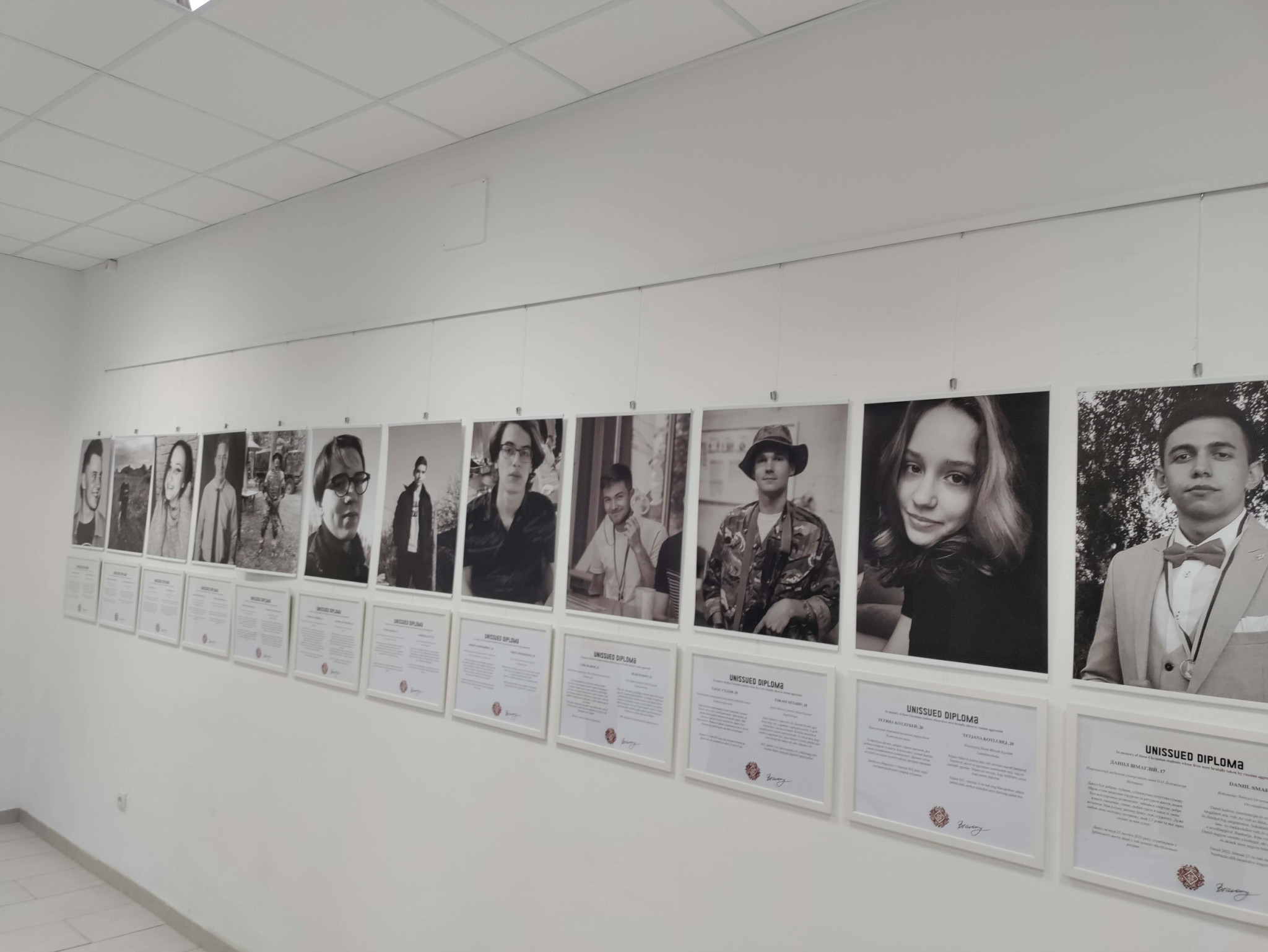 Drei Jahre nach Ausbruch der Vollinvasion erzählt eine Ausstellung im Theater-Foyer die Schicksale ukrainischer Studenten.