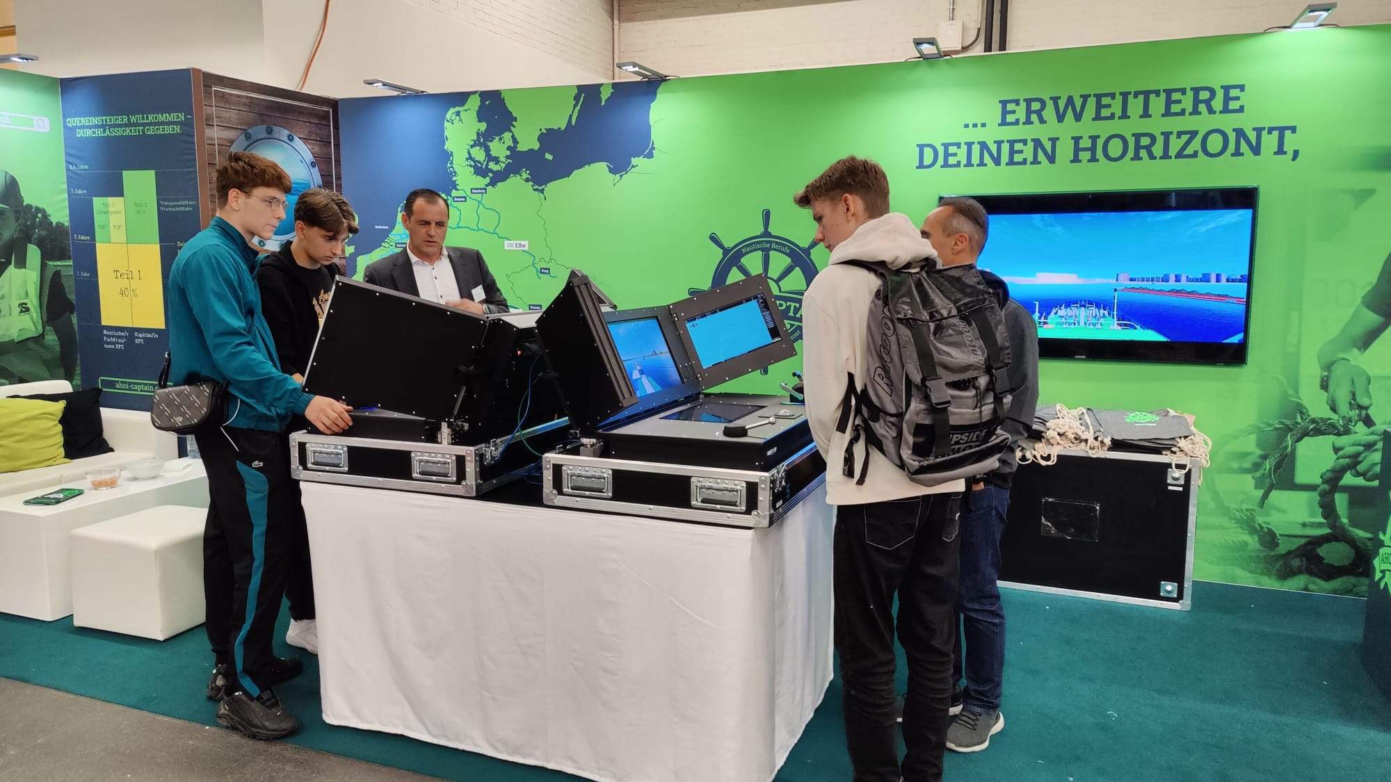 Am Stand können interessierte Jugendliche am Simulator einmal selbst testen, wie es ist, ein Güter- oder Passagierschiff zu lenken. Auch können sie ihre Fähigkeiten im Tauwerfen auf die Probe stellen. Expertinnen und Experten beantworten ausserdem alle Fragen rund um den Alltag auf dem Schiff und den beiden Ausbildungen Kapitän:in EFZ und nautische/r Fachfrau/-mann EFZ.
