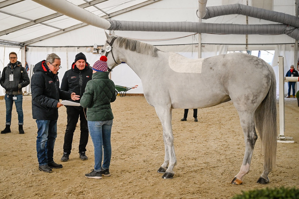 Nach dem Ausladen suchen die Betreuerinnen und Betreuer mit den Pferden zuallererst das Zelt mit dem Tierarzt und dessen Helferinnen und Helfern auf. Ein Muss zur Bestimmung der Identität mittels Auslesens eines implantierten Chips und zur Überprüfung, ob die Pferde über die nötigen Impfungen verfügen und gesund sind. Hierzu wird ihnen die Temperatur abgenommen. Gemäss Tierarzt Marco Hermann liegt die Körpertemperatur eines gesunden Pferdes zwischen 37,5 und 38 Grad Celsius.