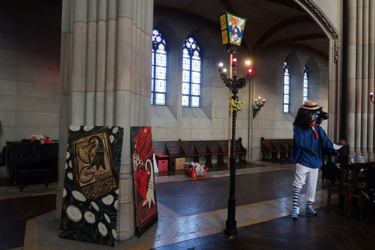 Von Sonntagmittag bis Mittwoch um 19 Uhr wird denn auch nicht ein Pfarrer hinter dem Altar stehen, sondern eine «Alti Dante» und von der Kanzel blickt eine majestätische Guggenmusik-Larve auf die Besucher herab.