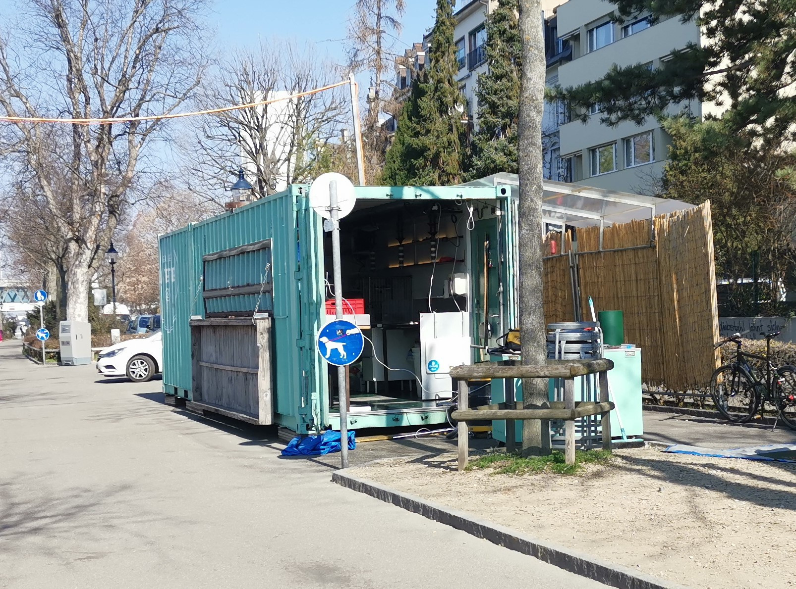 Die Aufbauarbeiten stehen derweil noch an, der Container ist noch nicht an Ort und Stelle.
