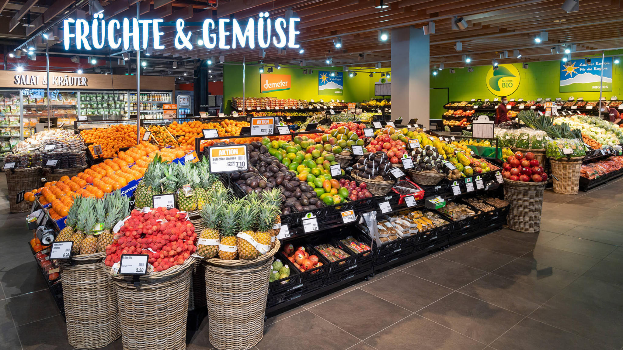 Wie Filialleiter Tobias Warnke ausführt, gleiche der Eingangsbereich mit seinen Frische-Angeboten nun einer Markthalle, wo sich beliebte Sortimente wie «Aus der Region» sowie Bio- oder auch Demeter-Produkte finden lassen.