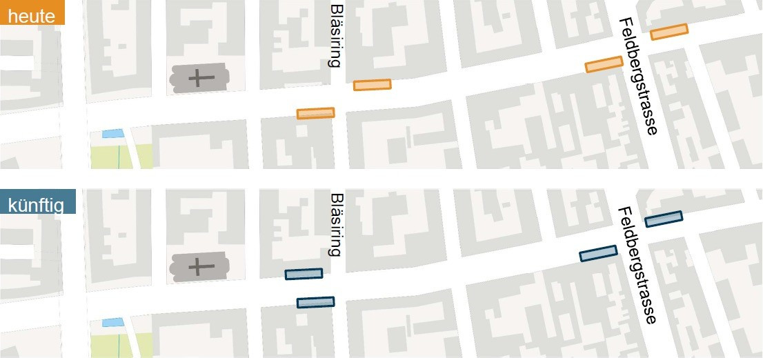 Das BVD zügelt die Haltestelle «Bläsiring» und ersetzt neun Bäume. Ausserdem soll die Einführung von Tempo 30 untersucht werden.