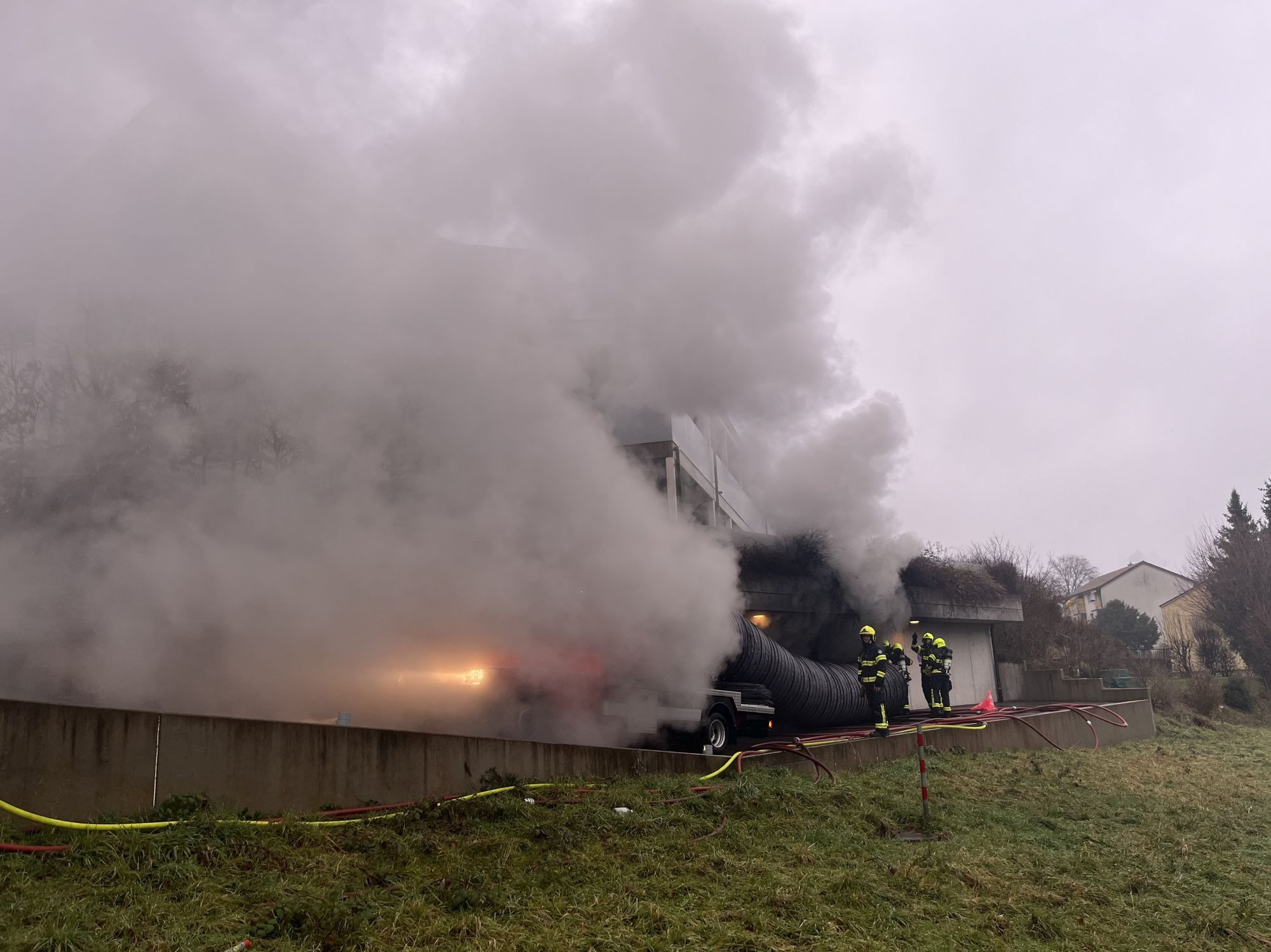 Der Brand brach gestern Donnerstagnachmittag um circa 15.00 Uhr aus. Beim Eintreffen der Ereignisdienste drang bereits dichter Rauch aus der Einstellhalle des Mehrfamilienhauses. Durch die Feuerwehr Klus und die Stützpunktfeuerwehr Reinach wurde der Brandherd rasch lokalisiert und das Feuer umgehend gelöscht.