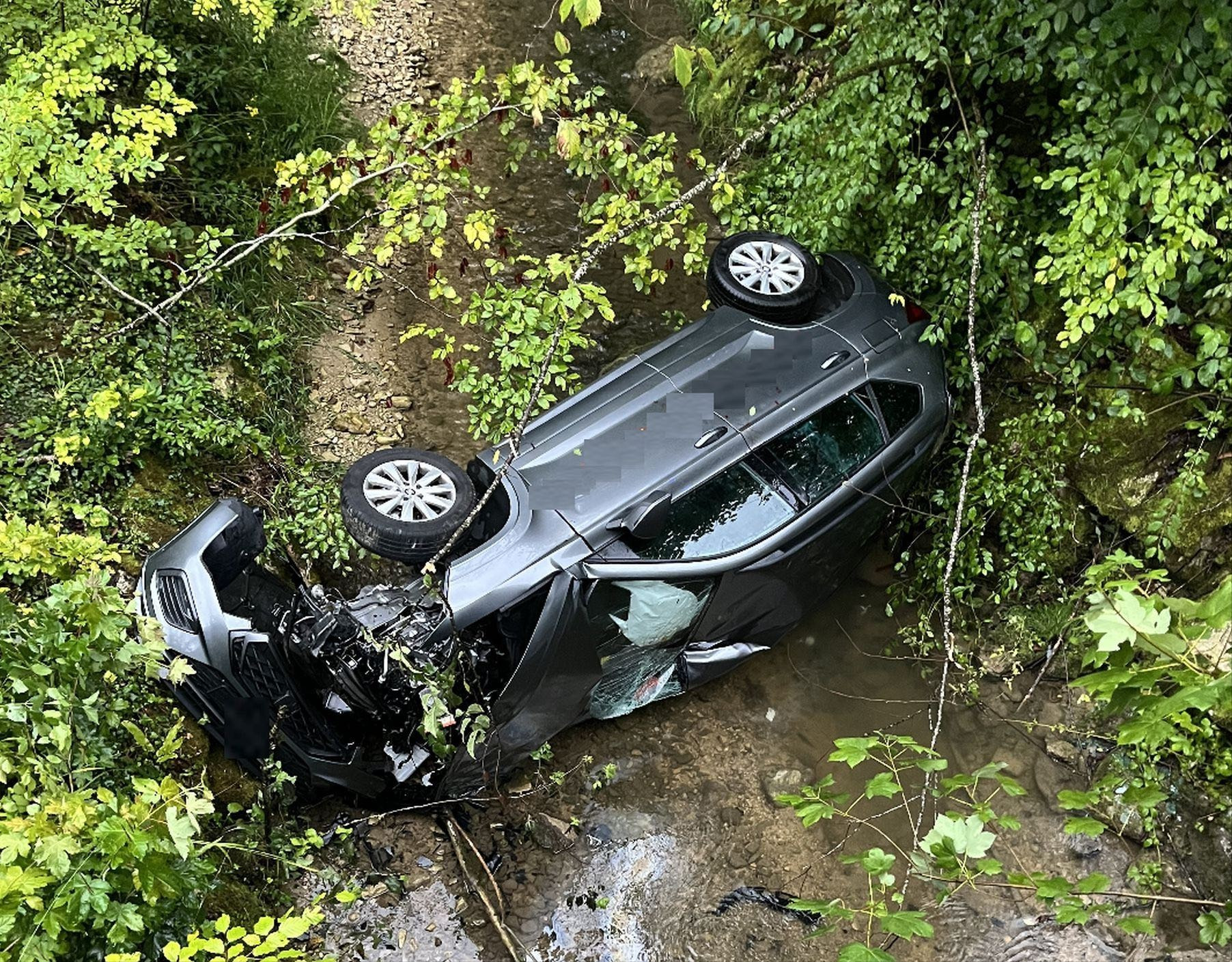 Der stark beschädigte Personenwagen wurde durch ein Abschleppunternehmen aus dem Bachbett geborgen, aufgeladen und abtransportiert.