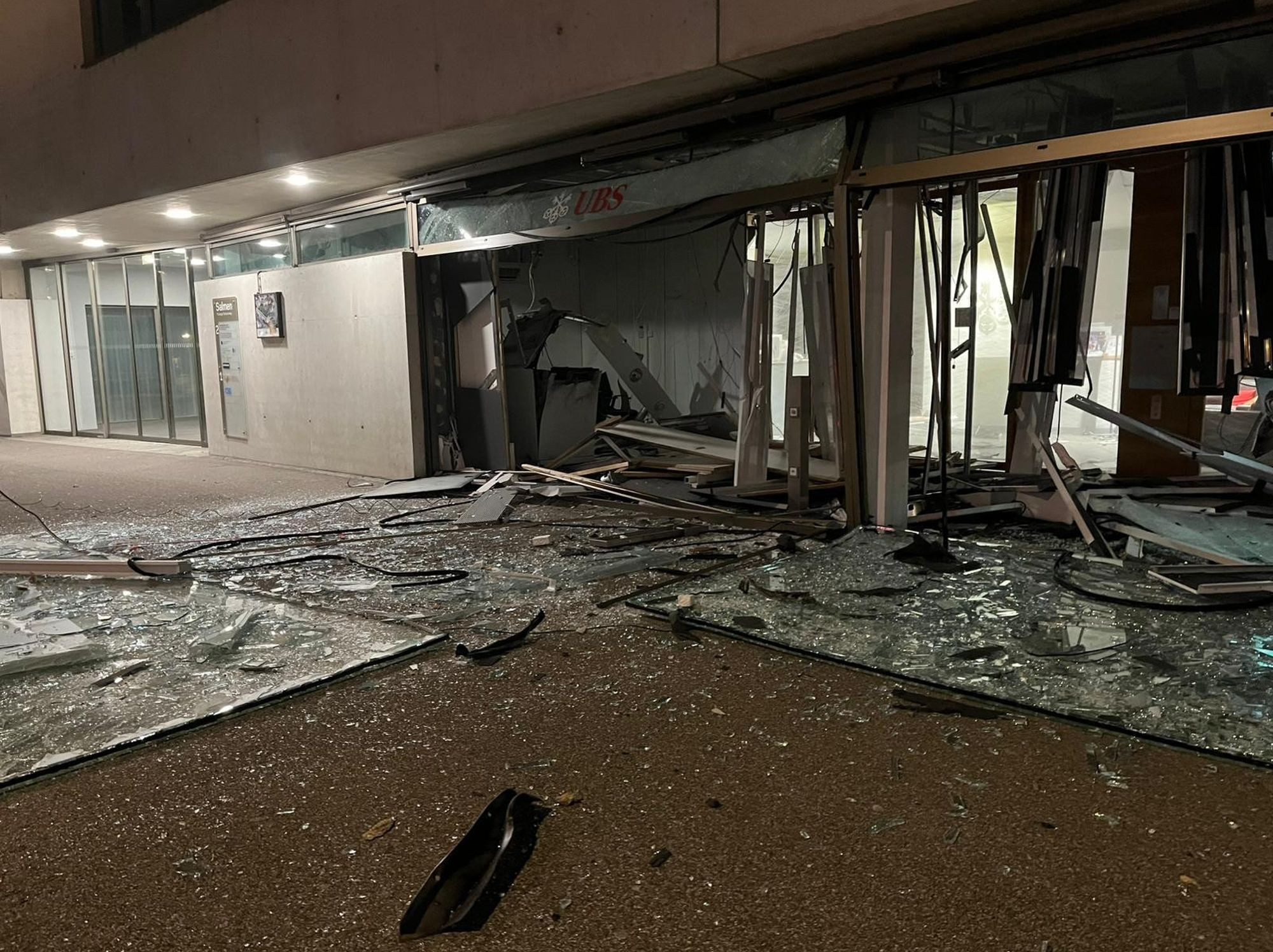 Kurz nach 02.45 Uhr gingen mehrere Meldungen von Drittpersonen über laute Detonationen ein. Die sofort ausgerückten Patrouillen stellten vor Ort den gesprengten Automaten fest. Das Tatobjekt befand sich in einem Vorraum der ansässigen Bankfiliale. Am Geldautomaten und am Gebäude sei grosser Sachschaden entstanden, so die Polizei.