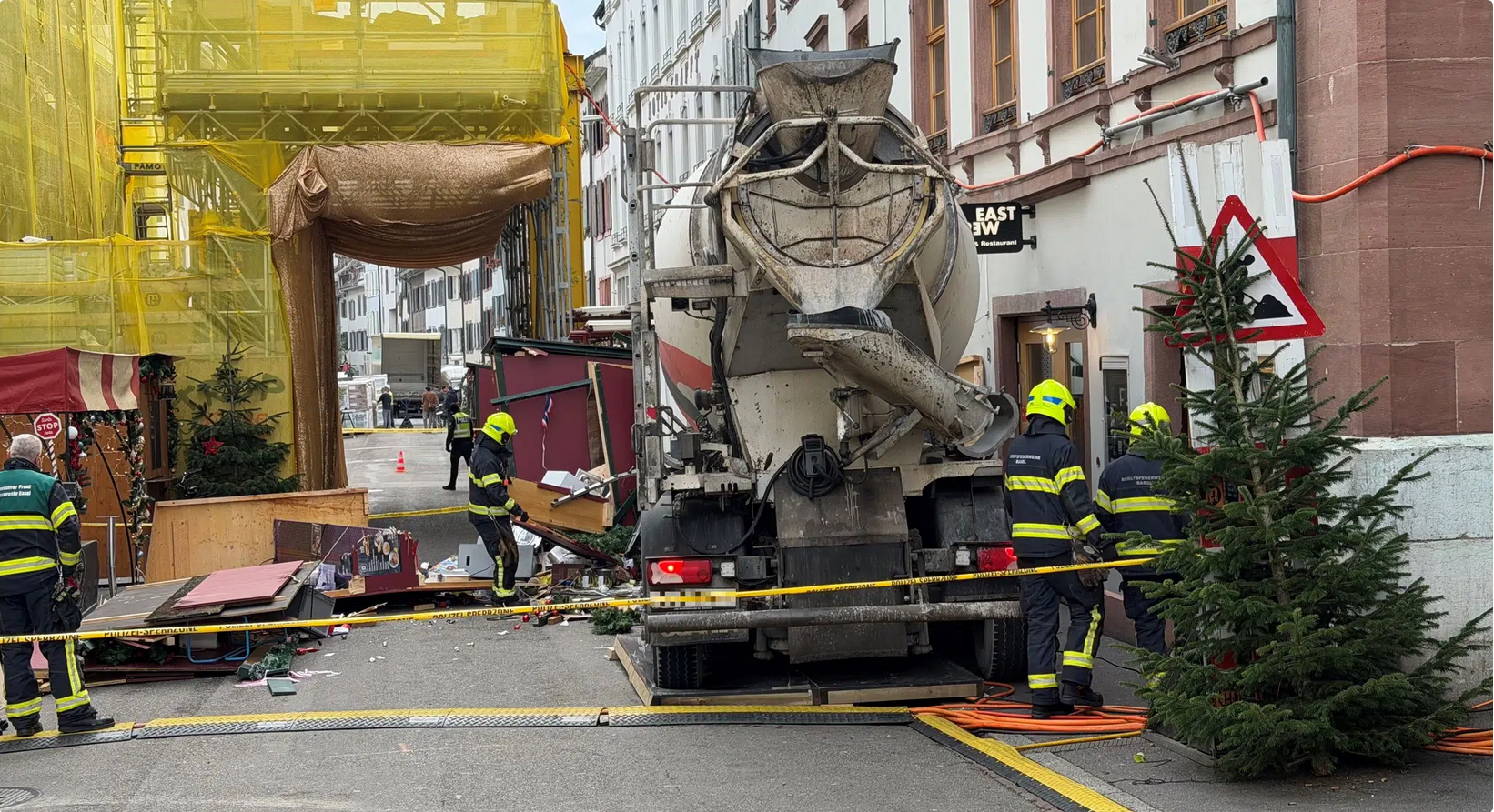 Heute Mittwochvormittag, kurz vor 11 Uhr, kam es in der Rheingasse zu einem Verkehrsunfall mit einem Lastwagen, wie die Basler Kantonspolizei via Whatsapp mitteilt. Derzeit wird die Strasse von den Ständen der Adväntsgass bespielt. Mehrere davon wurden beim Aufprall beschädigt, wie Fotos vom Unfallort zeigen.