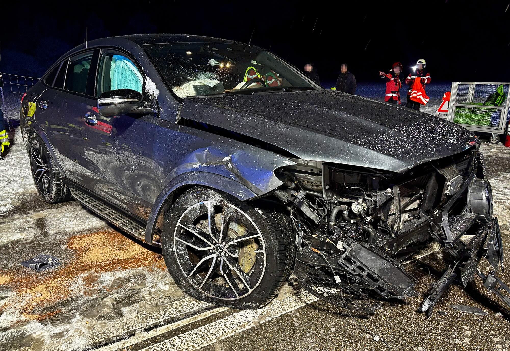 Am Samstagabend um 22 Uhr krachten zwei Personenwagen ineinander – dies, nachdem ein Wagen über die schneebedeckte Fahrbahn geschleudert war.