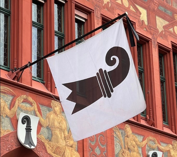 Die Fahne am Basler Rathaus trägt fünf Tage lang eine schwarze Trauerschleife.