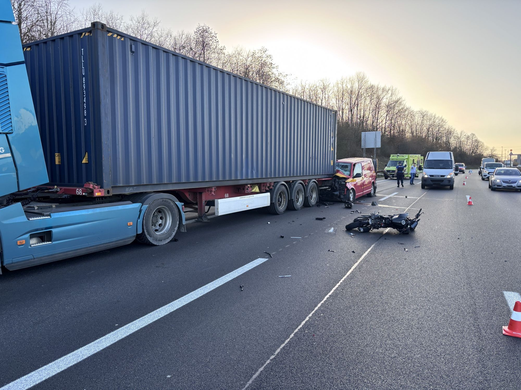 Die Polizei sperrte während der Sachverhaltsaufnahme zwei Fahrstreifen. Dies führte zu erheblichen Verkehrsbehinderungen rund um den Unfallort.
