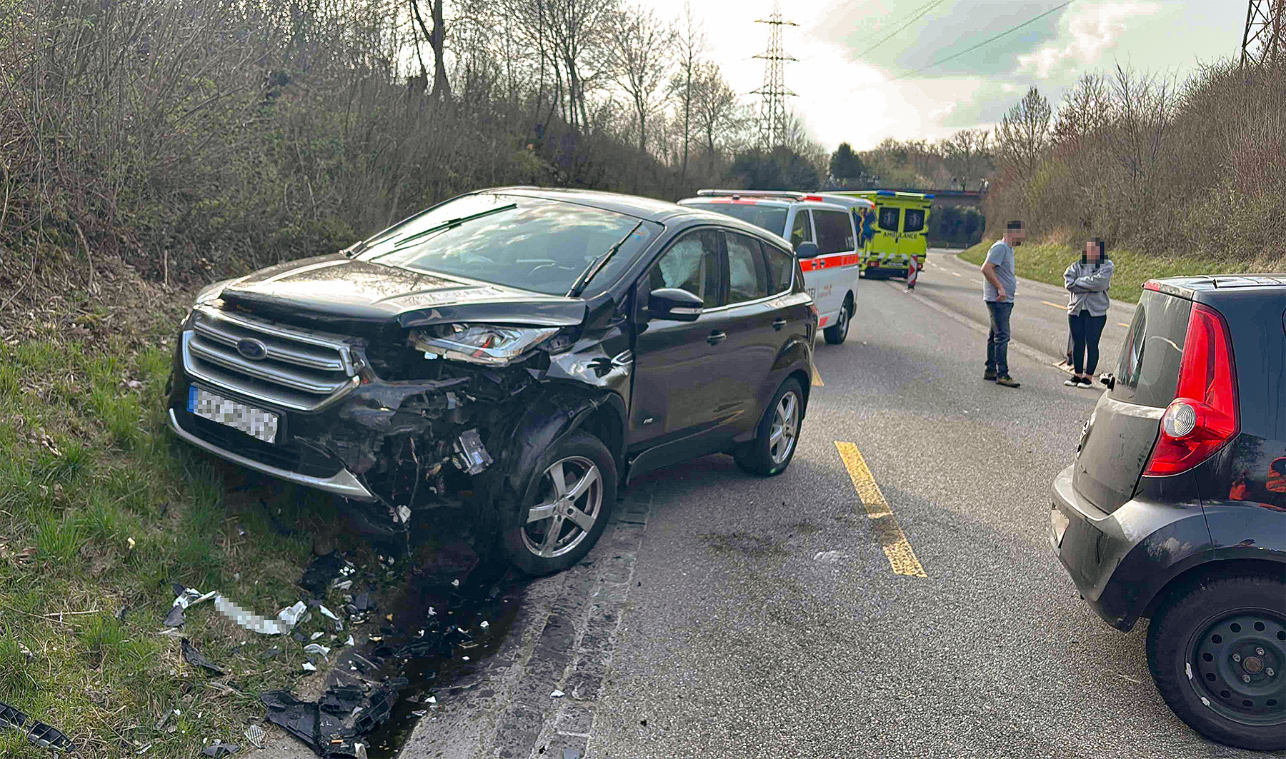 Gemäss den bisherigen Erkenntnissen fuhr ein 51-jähriger Fahrzeuglenker mit seinem schwarzen Opel von Münchenstein auf der Bruderholzstrasse in Richtung Bottmingen. Dabei geriet er aus noch nicht restlos geklärten Gründen auf die Gegenfahrbahn und kollidierte mit zwei korrekt entgegenkommenden Fahrzeugen, einem grauen Seat und einem schwarzen Ford, seitlich frontal.