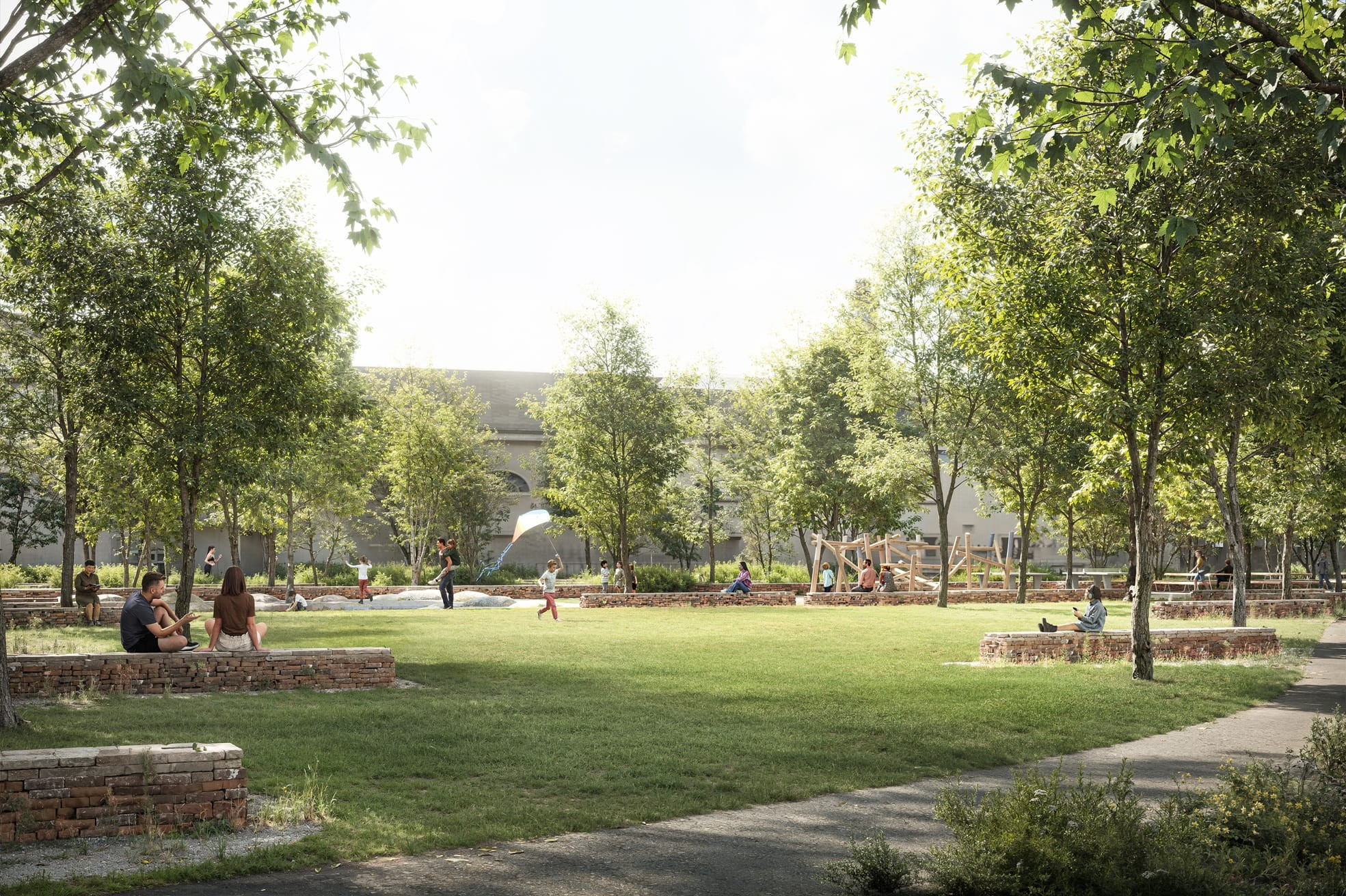Entlang des stillgelegten Gleisbogens soll die Gretel Bolliger-Promenade entstehen. Ein Fussweg soll künftig durch eine naturnahe Grünanlage führen. Insgesamt soll das Areal rund 200 neue Bäume erhalten: die Hälfte davon auf den Grünflächen, die andere Hälfte entlang der Strassen und auf den Plätzen.